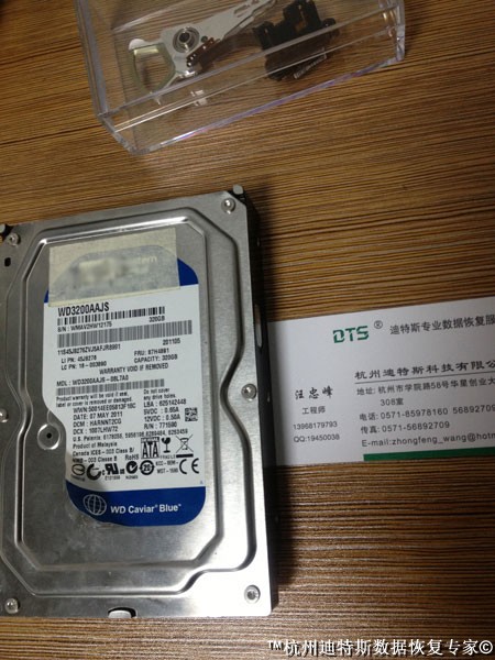 【杭州颐高数码广场某电脑公司用户的硬盘西数WD3200AAJS硬盘无法识别,里面硬盘数据无法读取】其实是客户是,我们老早的老客户杭州颐高数码某电脑公司,以前也是经常将用户的硬盘拿到我们杭州迪特斯数据恢复专家进行数据恢复的,这次有碰到自己的一个衢州某热电厂的一个单位的台式机硬盘,硬盘无法识别,有明显的异响,硬盘里面重要数据无法读取,用户尝试很多方式,还是无法将硬盘数据读取出来,于是找到电脑公司,电脑公司再找到我们,电脑公司也知道如果硬盘出现无法识别或者有明显的硬盘异响,基本上只能靠我们这种杭州专业的硬盘数据恢复公司恢复了