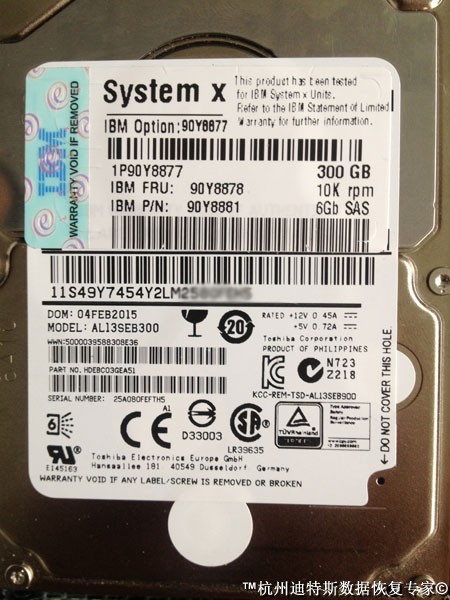 【由于服务器急需要快速系统修复,用户要我们携带硬盘设备驱车前往上门现场修复】我们杭州迪特斯数据恢复专家携带专业的设备和IBM服务器新配件驱车上门进行IBM X3650M3服务器的修复工作,由于用户以前数据丢失过,在以前我们数据恢复工程师的建议下,用户数据备份的相当好,数据并没有丢失,此时用户没有任何头绪,于是我们工程师让用户联系软件公司,测试备份出来的数据库有没有问题,然后是否需要处理掉原来的硬盘,于是软件公司经过测试,发现数据库数据没有问题,我们可以大胆的修复服务器,用户让我们携带的硬盘重新做阵列和系统。