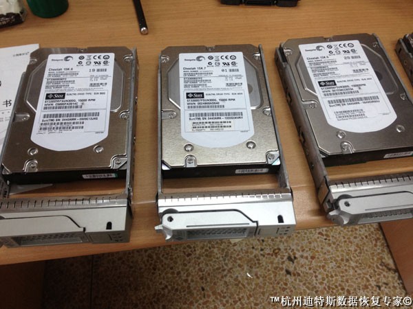 【为了不影响学校其他业务运行,晚上前往学校进行存储硬盘数据备份,最后分析数据恢复可行性报告,发现SUN存储与众不同】由于要恢复的SUN存储storagetek6140有其他业务运行,所以我们只能在没有用的情况下进行操作,最好的办法只能是晚上进行操作,当然恢复之前该存储数据已经全部备份,于是而16块的硬盘备份基本上是一个通宵全部搞定的,不然第二天就影响业务运行,于是经过一个通宵的16块FC光纤硬盘全部镜像,就开始对硬盘进行数据分析,可我们服务器高级数据恢复工程师汪工数据分析发现很多数据都不符合RAID5的原理结构,据用户描述RAID5当中有3个硬盘出现报错,那怕加上热备盘,应该RAID5处于离线状态,跟一开始跟用户说的其他LUN正常,一个不正常,按照道理如果是15个硬盘做RAID5在这基础上再做3个LUN ,其中3个硬盘报错,意味着RAID5已经出现处于离线状态,根本不可能其他LUN正常使用,让我们百思不得其解!而且现在根据RAID5分配情况16个硬盘当中尽然有3个热备盘,更让我们百思不得其解,而且RAID5显示容量就是15个硬盘做RAID5,怎么又多出来2个热备盘来,而且更离奇的是其他2组LUN竟然还在正常运行,没有出现任何的不正常现象!作为要恢复这个SUN存储的汪工一定要搞明白这离奇的现象,于是继续向信息中心的老师询问具体硬盘坏了的操作步骤,信息中心老师由于操作了好多次,自己也不知道具体步骤了,看来只能利用现有硬盘数据分析推测硬盘操作步骤,经过汪工的数据分析,终于得出了用户的操作步骤!信息中心老师听了,终于想起来了,确实如汪工描述的一模一样,老师觉得太神奇了!就跟破案一样!具体排查步骤这里只能不详细描述了,有问题可以咨询我们杭州迪特斯数据恢复汪工!我们最终分析出来了SUN存储的工作原理,也根据用户硬盘数据分析,数据可以全部恢复,于是跟学校老师沟通,让我们进行全权数据恢复,数据比较急需要加急恢复。